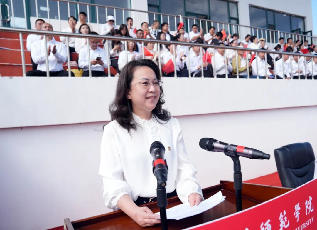 9月30日上午,朝阳师范学院召开2025级新生军训成果展示暨总结表彰大会。校党委书记孙士国,校党委副书记、校长笪可宁及领导班子成员,武警朝阳支队中校副政委尚振旺出席大会,学校各职能部门负责人、各二级学院党总支书记、院长、辅导员、新生班主任及2025级全体新生共同参会。
