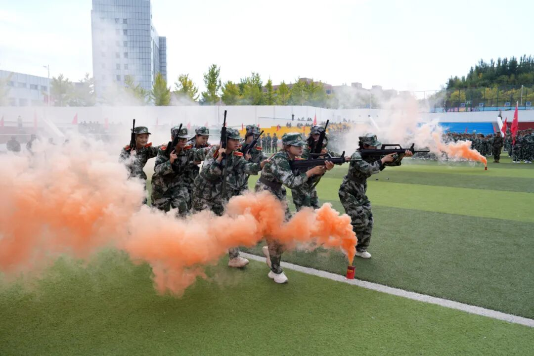特殊科目展示环节,刺杀操表演,持械整齐、呐喊震天,书写军人担当;擒敌术展示,拳脚利落、刚劲有力,尽显青春力量;战术科目演示,队形变换迅速,配合默契,快速卧倒、瞄准冲锋等动作标准流畅,展现出极强的组织纪律性和战斗协作能力。现场热烈激昂的氛围深深感染了在场的同学们,大家纷纷表示要将展示中蕴含的顽强不屈的意志、团结协作的精神、严守纪律的品格切实融入到自身成长中。