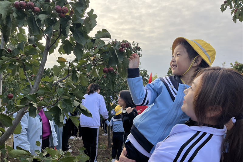 孩子们踮起脚尖探寻红果,大学生化身“采摘指导员”,细致讲解技巧、分享心得,温馨互动的场景,成为“劳动+育人”体系落地的鲜活注脚,更彰显了大中小学思政教育一体化建设的扎实成效。一位参与采摘的学生感慨:“指尖触碰果实的瞬间,收获的不仅是山楂,更是对‘耕耘有获’的真切感悟。”