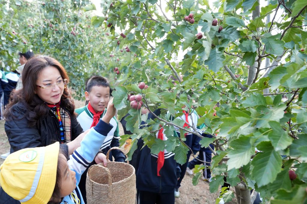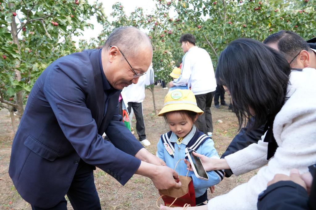 本届文化节将劳动教育课堂延伸到山楂林,成为学校创新育人模式的生动实践。活动现场,校领导带头走进采摘区,与师生、孩童一同体验采摘乐趣。