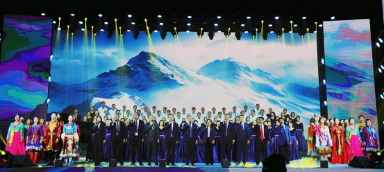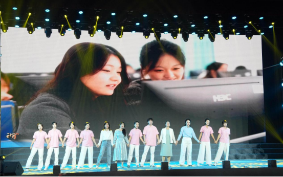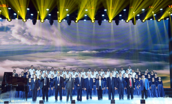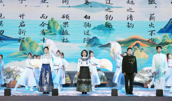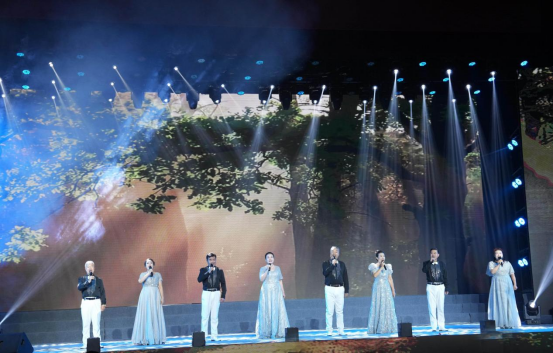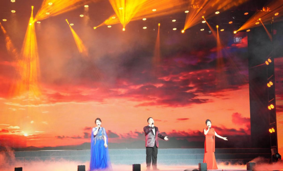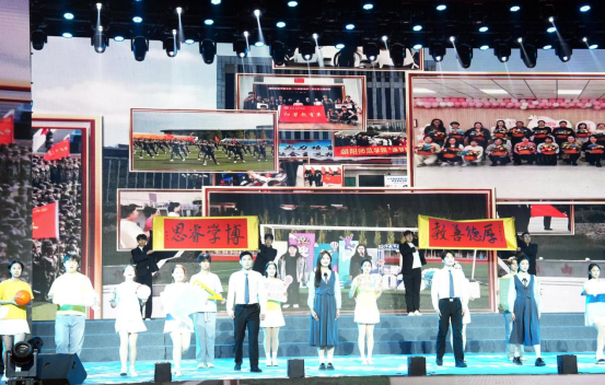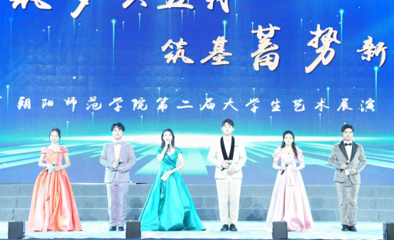 展演晚会分筑基启新篇、逐梦向未来、扬帆新征程三个篇章。在第一篇章中,一篇《朝阳师院启航赋》,通过校友们用相声、歌声等形式演绎,诠释了母校“博学致用 敬业乐群”的校训精神,也献上了对母校的诚挚祝福。在第二篇章中,十二个学院共同开启的《同心共筑 师院华章》,节奏明快的《一路芬芳》,精心打造的皮影剧《传承·绽放》,沈阳体育学院带来的武术《传承》,荣休老师们带来的小合唱《我们的生活充满阳光》等精彩节目,共同绘就了朝师人同心筑梦的时代画卷,共同抒发了迈向未来的时代豪情。在第三篇章中,《青春的选择》《智舞未来》《唱支山歌给党听》《黄河》《征程》等节目,把晚会推向了高潮。六十五载薪火相传,朝师人从未停止前行的脚步,站在新的历史起点上,他们把目光投向更远的未来,将梦想与希望注入青春的航道。演出尾声,我校党委书记孙士国、校长笪可宁与全体领导班子共同演唱《我和我的祖国》,唱出了学校筑基蓄势、开启新篇的美好未来,也深深祝福伟大祖国繁荣昌盛、国泰民安。