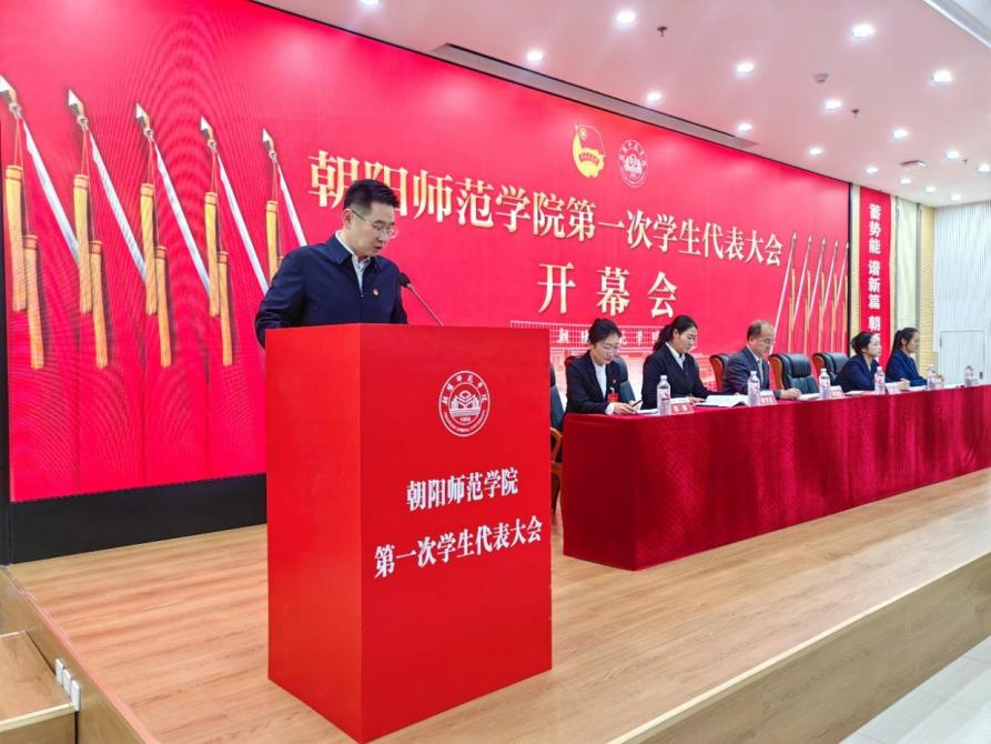 11月15日,我校隆重召开第一次学生代表大会。学校副校长李海琼,共青团朝阳市委书记房正、共青团朝阳市委副书记陈丽然、学校相关职能部门负责人、各学院党总支副书记、团委书记、辅导员参加开幕会。来自全校的195名代表共赴盛会。
