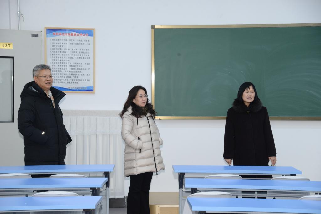 12月12日,笪可宁、邵永运深入考场一线实地巡视。巡视过程中,笪可宁认真查看了各考场的准备情况,并详细询问了考务培训、设备检测、周边秩序、应急处置的安排,教务部门负责人做了工作汇报。检查中,笪可宁特别关注考生服务保障工作。笪可宁对考务团队的周密部署表示肯定,强调要把考务管理与人性化服务相结合,根据大学英语等级考试工作要求,在严格要求考生遵章守纪的同时,要热心、暖心服务考生,从考务组织、管理的细节彰显学校人文关怀。各部门要强化责任担当,压实主体责任,协同合作、系统联动,做好各类突发事件应急处置,筑牢考试安全防线,确保考试全程零差错、零事故。