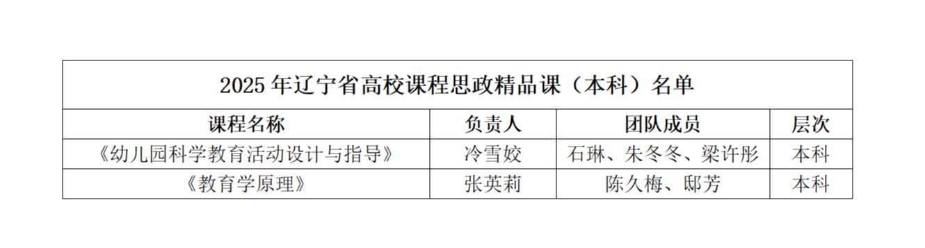 近日,辽宁省教育厅公布了高校课程思政精品课程遴选结果,我校学前教育学院《幼儿园科学教育活动设计与指导》《教育学原理》两门本科课程成功入选,这是学前教育学院自获批辽宁省课程思政试点院系以来的重要培育成果。
