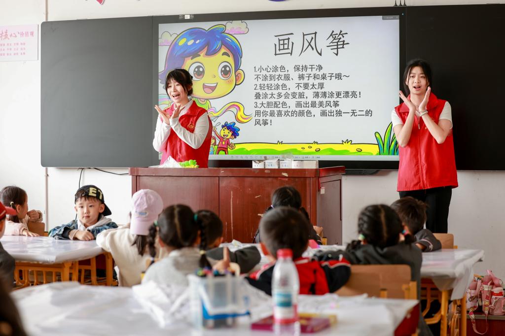 研学伊始,小朋友们化身文明小访客,在志愿者的带领下有序走进校园图书馆,在浓厚书香氛围中播撒热爱知识的种子。在创意手绘课堂上,孩子们以笔为媒、以风筝为卷,将春日美好融入创作,用稚嫩笔触勾勒心中童趣。