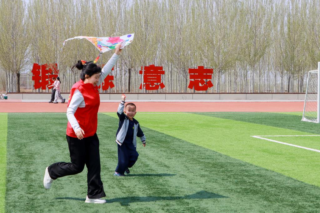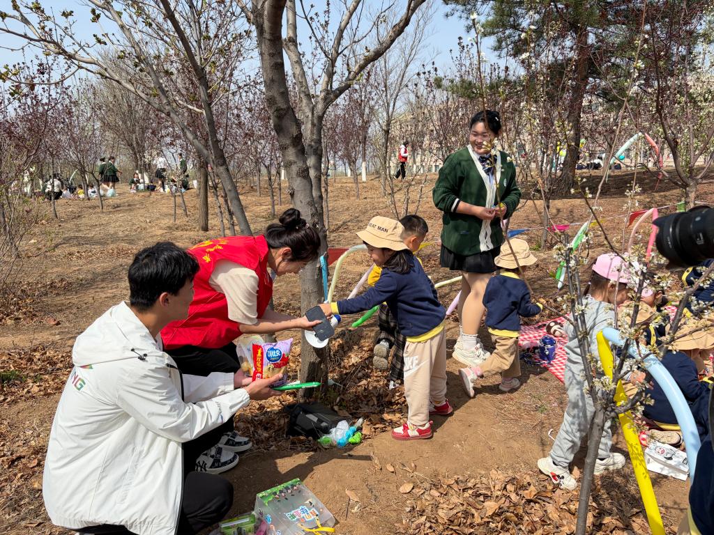 研学途中,志愿者们陪伴幼儿们来到运动场,孩子们迎着春风奔跑,亲手绘制的风筝承载着童年梦想升空。漫步校园,孩子们在花园里围坐野餐,在树林里跟着志愿者辨识草木、挖掘野菜,在探索自然的过程中,尽情释放天性,尽享春日校园的盎然生机。
