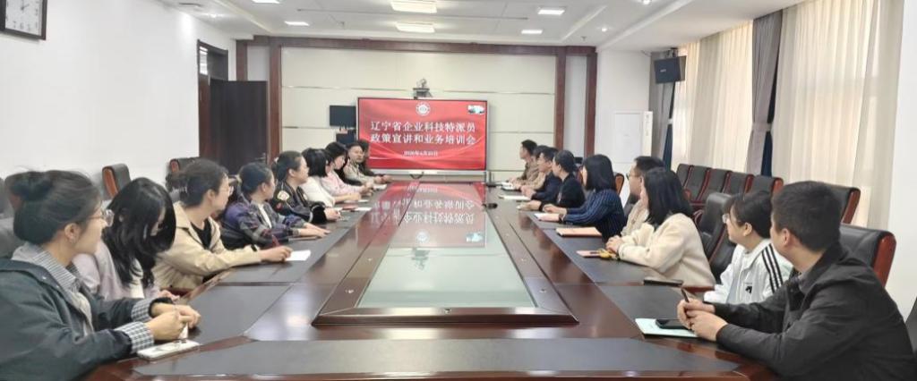 4月23日下午,科研处组织部分科研人员参加辽宁省企业科技特派员政策宣讲和业务线上培训会议。会场设在综合楼8楼会议室,科研处处长曹英慧、副处长韩佳宏及部分科研人员和科技特派员参加会议。