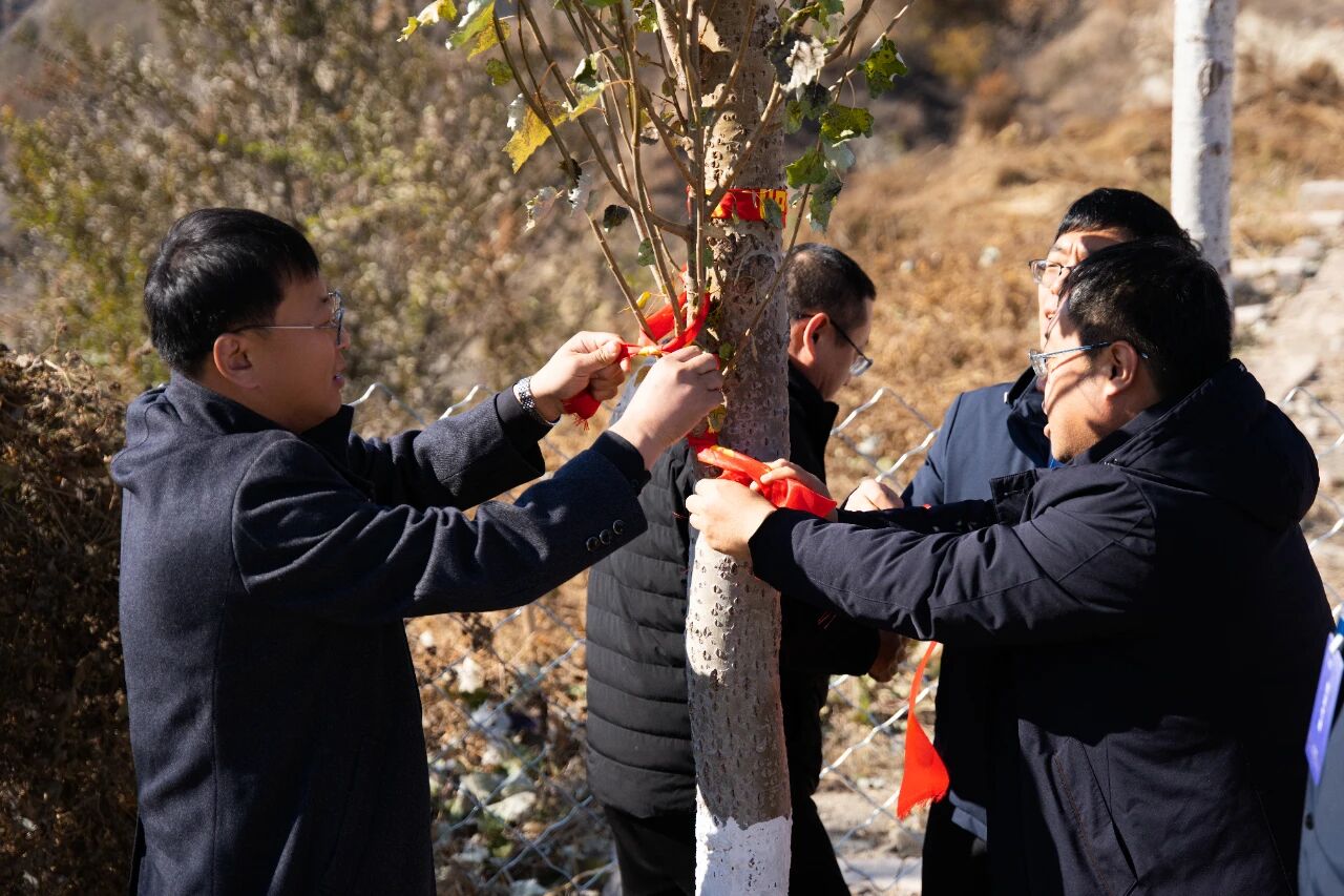 仪式上,校友付海威、徐文阁为“校友同心路”揭牌,校友武科新宣布”校友同心路”正式启动。随后,校友们将红绸带系挂在规划路线的树干上,标记道路走向,表达建好“校友同心路”的信心和决心。