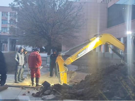 12月12日晚,教学区主要供热管道因设备老化发生爆裂,导致供暖系统压力骤降,直接影响教学楼、实验楼等低压区域的供暖效果。当晚室外温度已达-14℃,供暖系统的稳定性关系到数千名师生的教学科研环境。