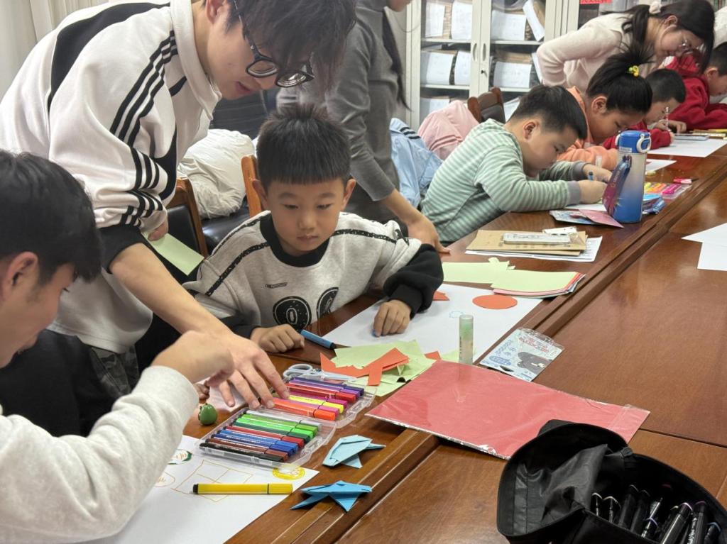 红色传承小课堂里,小英雄的故事被讲得绘声绘色,红色动画片段引发阵阵讨论,孩子们拿起画笔,将对家国的热爱绘于纸上;文化体验小课堂年味十足,写福字、剪窗花、听民间故事,一双双小手在动手实践中感受传统节日的魅力,文化认同悄然扎根;思维启航小课堂上,数独挑战、图形推理、编程启蒙等趣味数学游戏轮番登场,充分发挥学院学科优势,让孩子们在玩乐中激发逻辑思维与探索精神;安全守护小课堂则通过情景模拟、互动问答等形式,把冬季防火防灾、交通安全、网络安全等知识讲透讲活,帮助孩子们提升自我保护意识与应急处理能力。