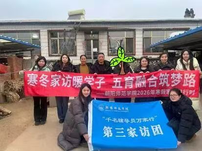 教育是一场温暖的奔赴,家访是学校与家庭同心育人的重要桥梁。为深入贯彻落实教育部及辽宁省教育厅“千名辅导员万家行”活动精神,朝阳师范学院深耕家访育人工作20余载,始终以爱为帆、以责为桨,走进上万名学生家中送温暖、解难题、话成长。1月30日—31日,学校第三家访团紧扣“家访+”五大融合育人模式,深入葫芦岛地区,足迹遍布建昌、绥中、兴城及连山区,走访12户学生家庭。家访团由教学院长、思政教师及辅导员组成,将学风领航、思政育人、暖心帮扶贯穿全程,用脚步丈量责任,用温情诠释教育初心,让寒冬里的学子与家庭,感受到来自学校的深切关怀与殷切期许。