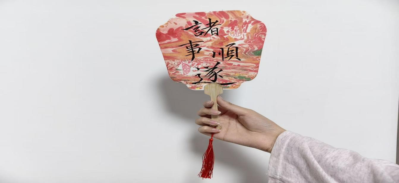 素扇凝霜,漆韵生香。其工艺传承千年,以天然漆料为媒,将国风美学凝于扇面。漆扇制作时,成员们先对扇面进行平整、打底处理,再调配天然漆料,运用晕染、勾勒、点彩等手法创作山水、花卉、流云等图案,经过自然晾干、定型,一把把兼具观赏性与实用性的国风漆扇惊艳呈现。