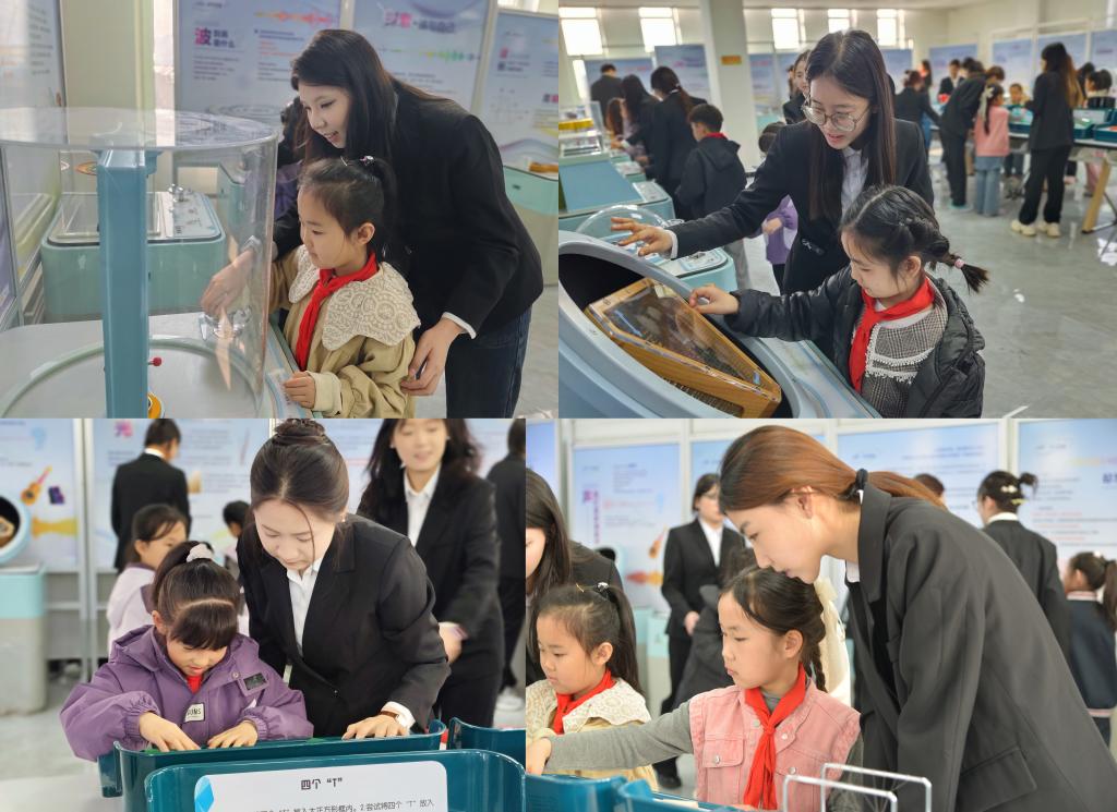活动中,大学生志愿者与留守儿童一一结对,为孩子们送上书包、笔袋等学习用品,以“大手拉小手”的温情陪伴,迅速拉近彼此距离,让温暖与信任在互动中传递。在科技馆三大核心展区,志愿者化身“科普小老师”,结合师范专业优势,带领孩子们沉浸式体验科学魅力。大家通过动手操作、现场观察、互动体验,学习安全知识与基础科学原理,感受科技的神奇与乐趣。